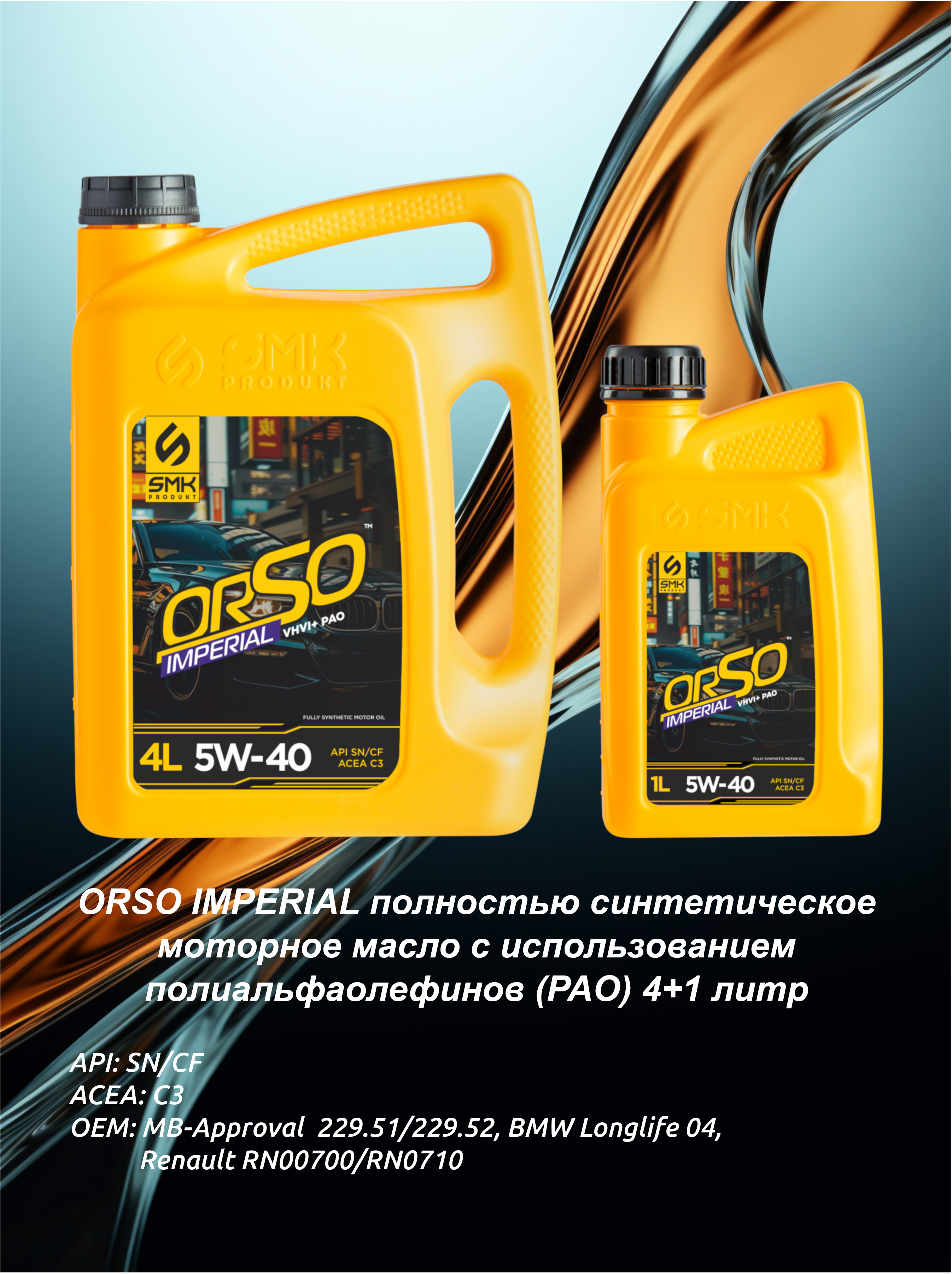 Универсальное моторное масло ORSO GRAND полностью синтетическое моторное масло с использованием полиальфаолефинов (PАО).