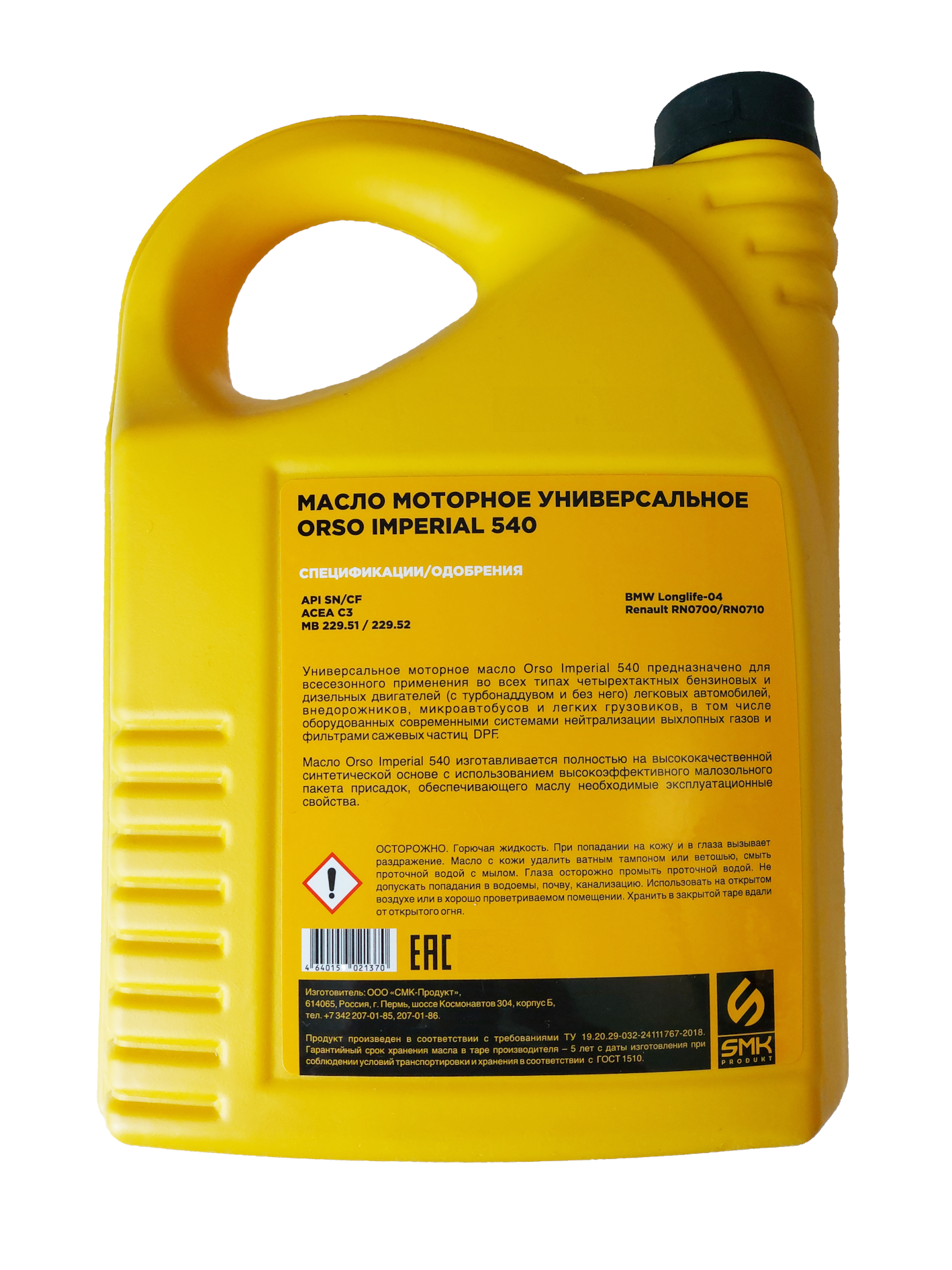 Универсальное моторное масло ORSO IMPERIAL полностью синтетическое моторное масло с использованием полиальфаолефинов (PАО).
